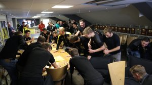 Jubelen sto i taket i lokalene på Åråsen da opprykket ble sikret på denne nydelige mandagen i desember.