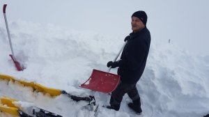 Selv med nærmere en meter snø, så er det snart kun drøye fem uker til A-laget spiller sin generalprøve mot Notodden på Nammo Stadion. Uka etter er det serieåpning borte mot Nest-Sotra. Svend Haukås (bildet) var en av dem som stilte opp med snøskuffa si og godt humør på tirsdag